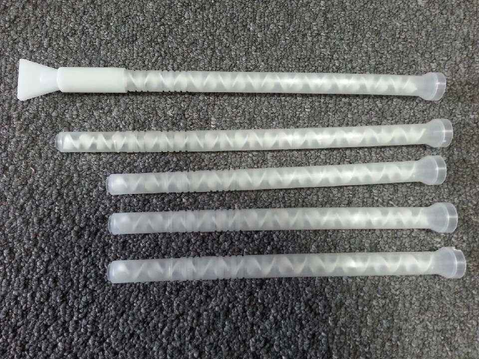 混合管是一種應(yīng)用在多流體攪拌的新科技產(chǎn)品,由一連串的上下左右旋葉片,依序相互垂直排列在套管內(nèi)組合而成。它無須借由外力驅(qū)動(dòng);僅利用流體本身通過混合器時(shí),進(jìn)行連續(xù)的切割與重合,將兩種以上的材料轉(zhuǎn)化為均勻的混合液。